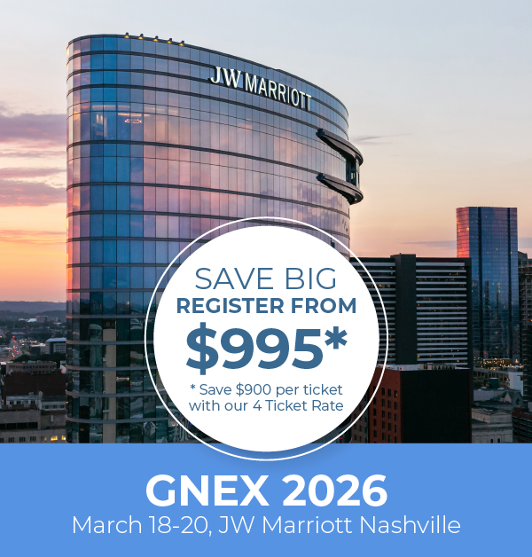 SPECIAL RATE: Grab one or more delegate tickets to GNEX 2026 Conference to be held at the vibrant JW Marriott in Nashville 18-20 March 2026 at lowest available rates.